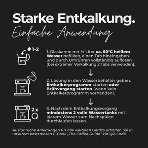 ✅ EINFACHE ANWENDUNG: Den Entkalker Siebträgermaschine einfach in 50° C heißem Wasser auflösen und in die Maschine gießen. Eine genaue Anleitung finden Sie via QR-Code in unserem E-Book.