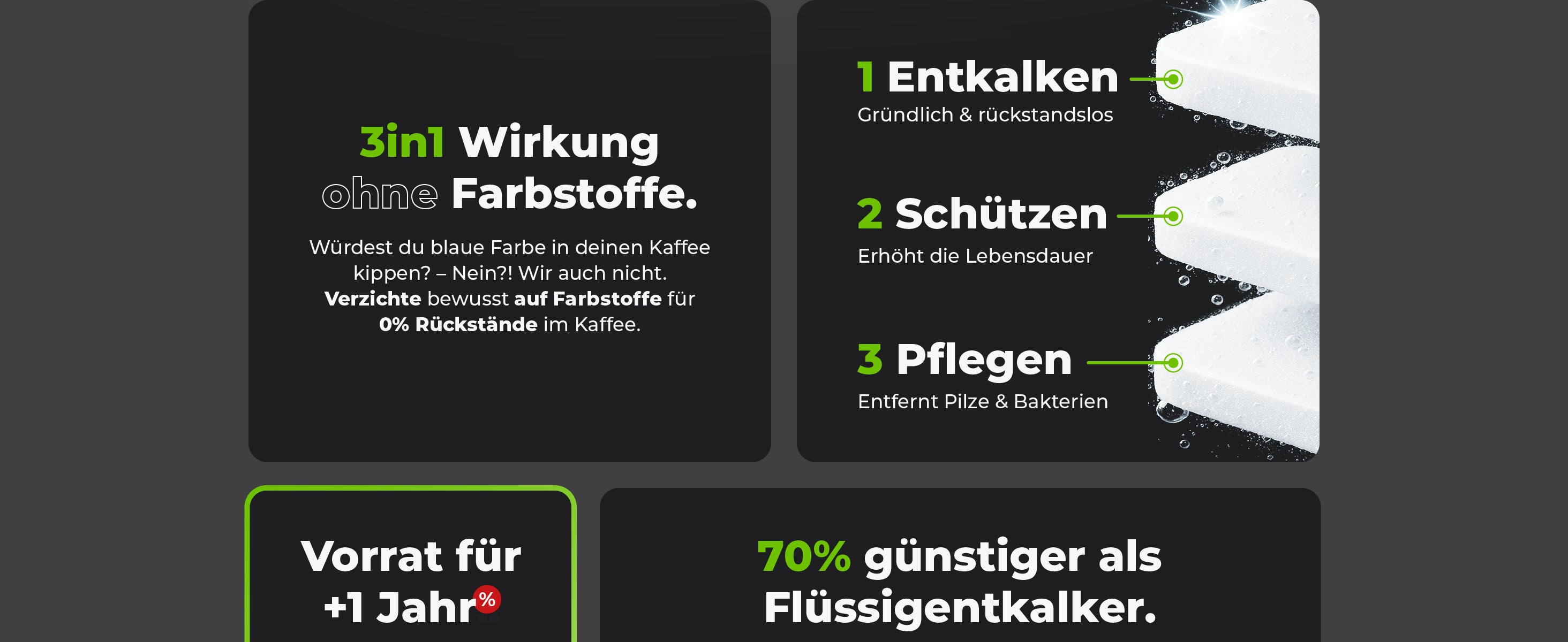 - ✨ Preiswert & effektiv: Günstiger als Hersteller-Tabs, ohne Kompromisse bei der Entkalkungsleistung.